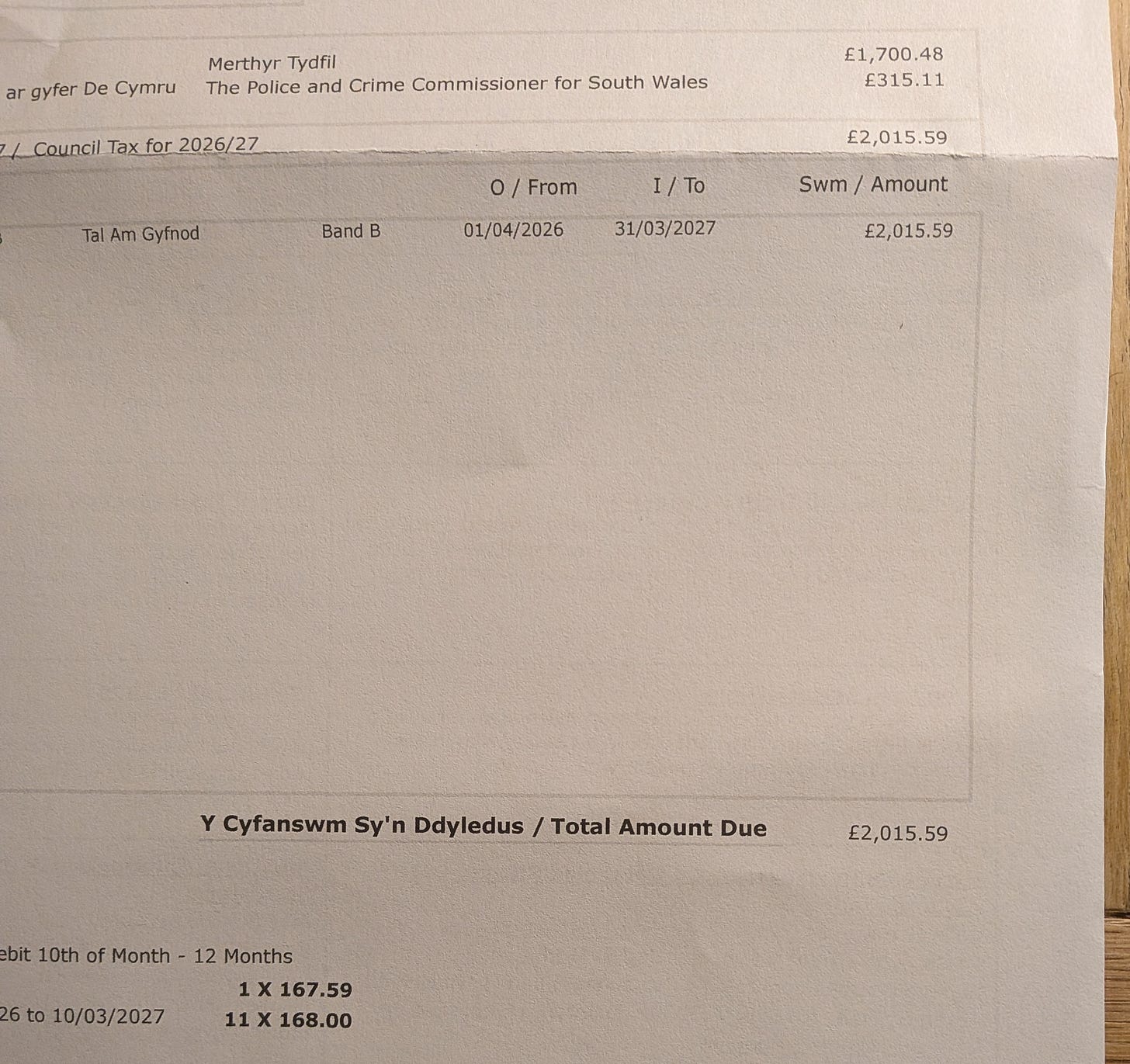 If you’re in the south Wales valleys, you’ve most likely had a piece of post through the letterbox this week (or last or next) regarding how much you owe for your 2026/27 council tax. If you haven’t had it already, prepare yourself, because you’ll owe substantially more than you did last year